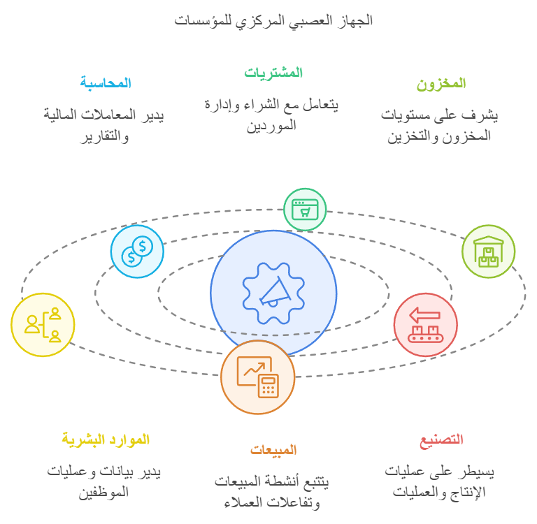 يوصف بأنه ” الجهاز العصبى المركزى للمؤسسة ” ويوفر الأتمتة والتكامل والذكاء لتشغيل جميع عمليات الأعمال اليومية بكفاءة ، وهو مناسب لجميع الشركات والمؤسسات بمختلف أنواعها وأحجامها، ويساعد الشركات في عمل الخطط المستقبلية والتقارير الدقيقة للمؤسسة ويسهل إدارة الأعمال اليومية و التحكم في الأعمال المختلفة داخل المؤسسة.