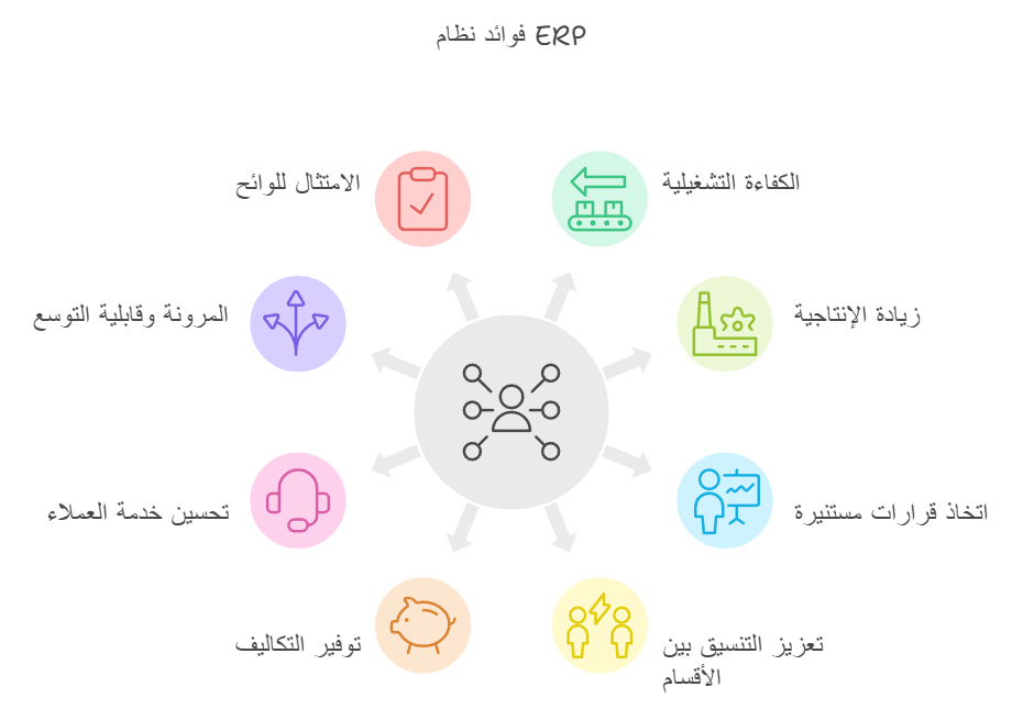 نظام ERP ليس مجرد أداة إدارية؛ بل هو استثمار استراتيجي يمكن أن يساعد الشركات على تحسين أدائها، وخفض التكاليف، وتعزيز الكفاءة. من خلال دمج جميع العمليات وتوفير رؤية شاملة للمؤسسة، يمكن للشركات استخدام نظام ERP للنمو بشكل مستدام وزيادة تنافسيتها في السوق.