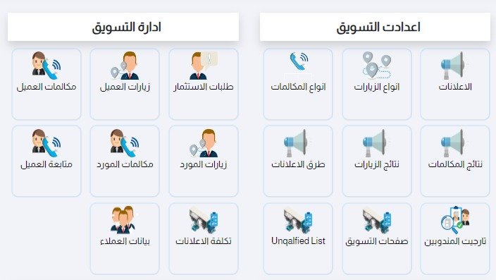 - يشمل وظائف لتسهيل الحملات التسويقية وتقديم محتوى مخصص للعملاء بناءً على سلوكياتهم واهتماماتهم. يتيح النظام أيضًا تتبع نتائج الحملات وتحليلها لتحسين الاستراتيجيات المستقبلية.