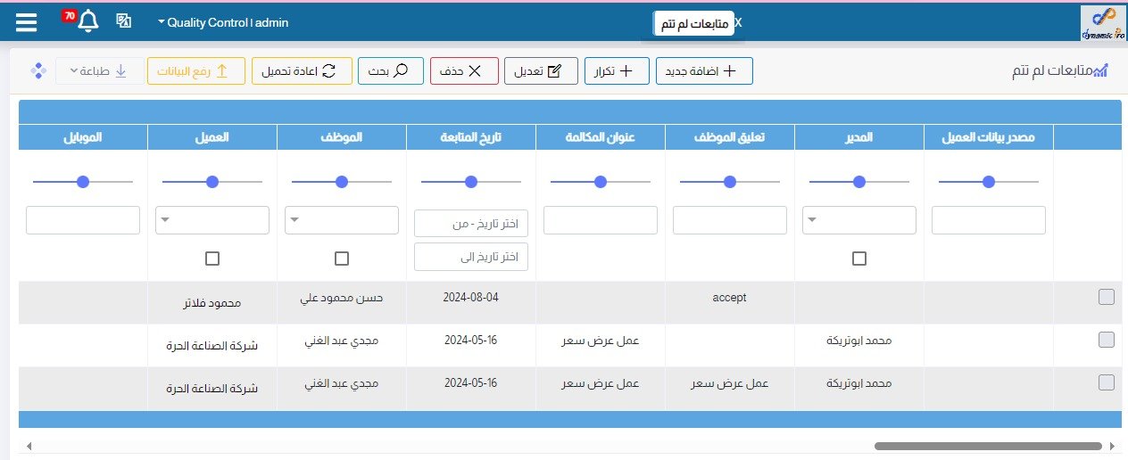 - يمكنك النظام من متابعة احتياجات وطلبات العملاء الحاليين والمحتملين مع عمل حجز وتنبيهات على مواعيد المكالمات والزيارات المحتمله مع استعراض التقارير التفصيليه عنهم .